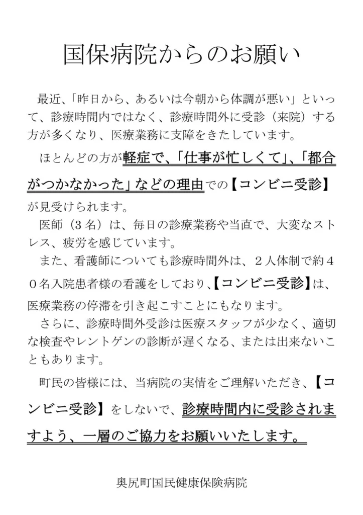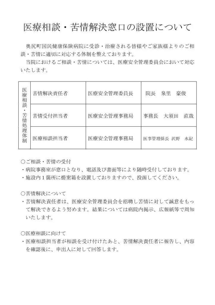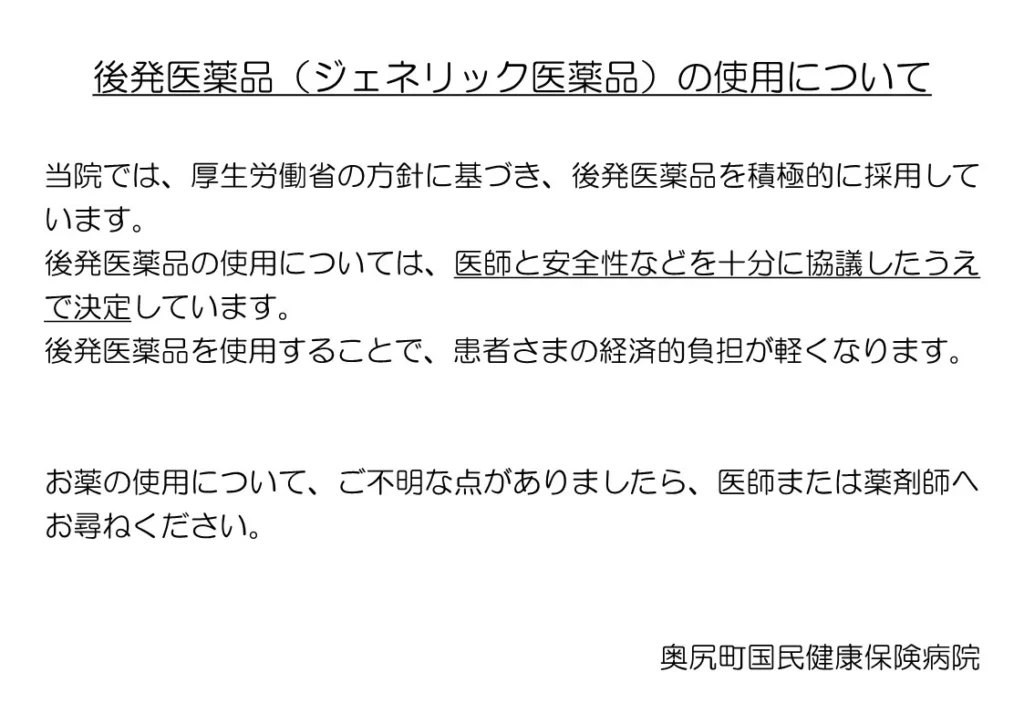 奥尻町国民健康保険病院では、院内に掲示されている実際の掲示物をそのまま公開いたします。画像をクリックすると、大きな画面でお読みいただけます。