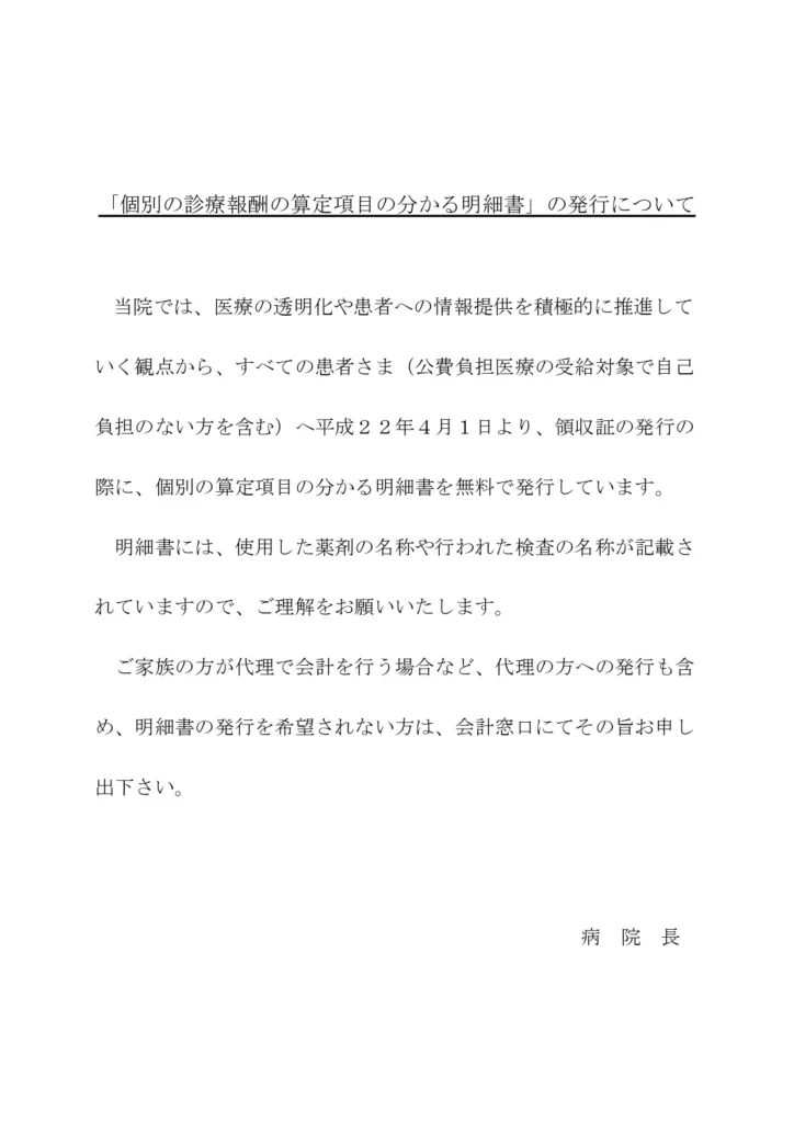 「個別の診療報酬の算定項目の分かる明細書」の発行について